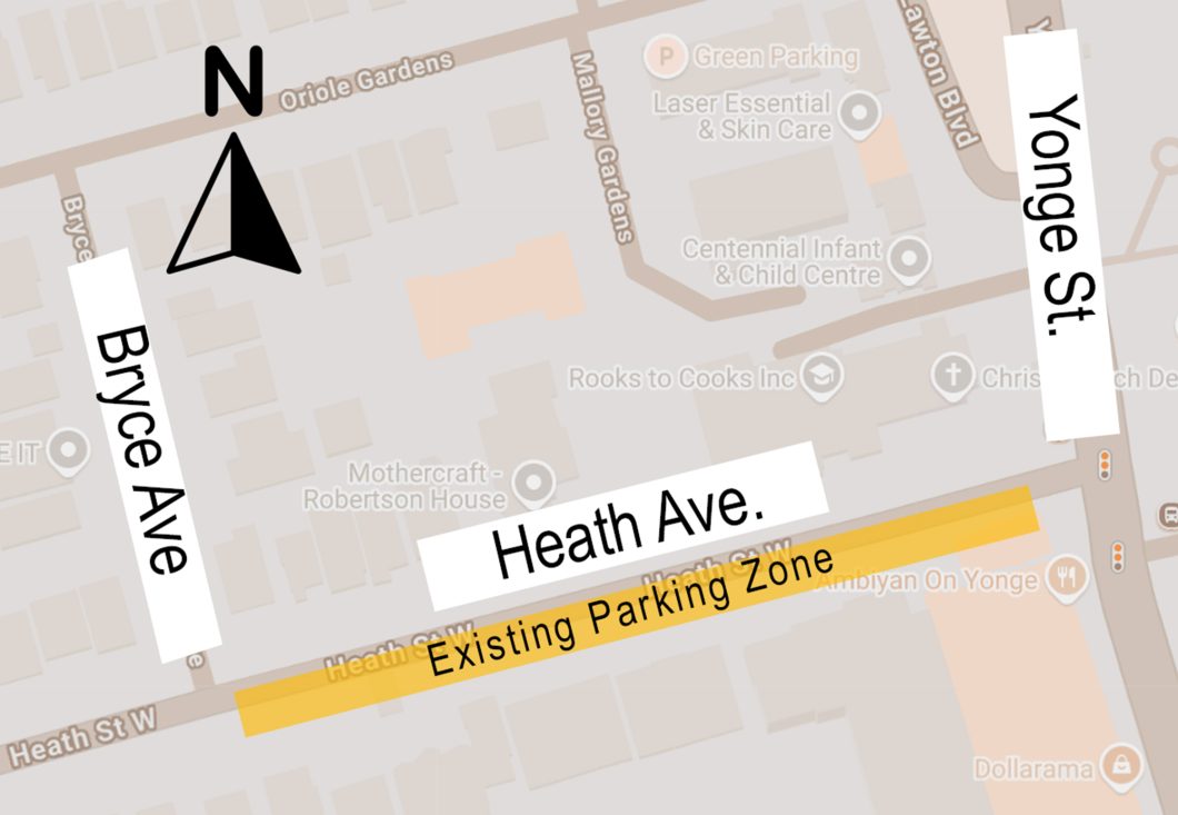 The Councillor’s office wants to ensure that all directly affected residents are properly consulted. Once sufficient feedback is received from residents on Heath Street (between Yonge and Bryce), they are prepared to formally bring the proposed change to Toronto and East York Community Council for approval.